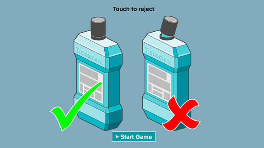 Manufacturers often invest significant manual effort at the end of the line to ensure product quality. The product's perfect labeling, correct positioning of labels, and proper cap closure are all inspected – relying on the human eye. This game challenges you to eject all faulty products and compare your results with our fully automatic TQS solution.