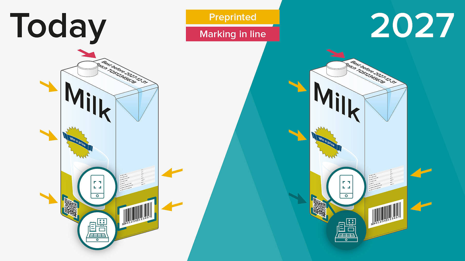 Another new feature is that the code must function universally. So far, various code systems are in use: static QR codes, which are used for raffles, for example, should be readable on consumers’ smartphones. If Data Matrix codes are used for internal processes, it is sufficient if they can be read by the warehouse and logistics. And the classic barcode is, of course, scanned at the checkout. The new 2D code does all of this.